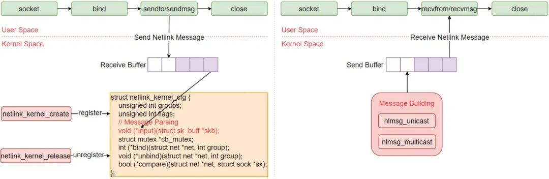 一、介绍 Netlink背景 Netlink是一个套接字家族,主要用于内核和用户进程之间的双向通信。与ioctl相比,它具有全双工、异步、组播的通信特点。